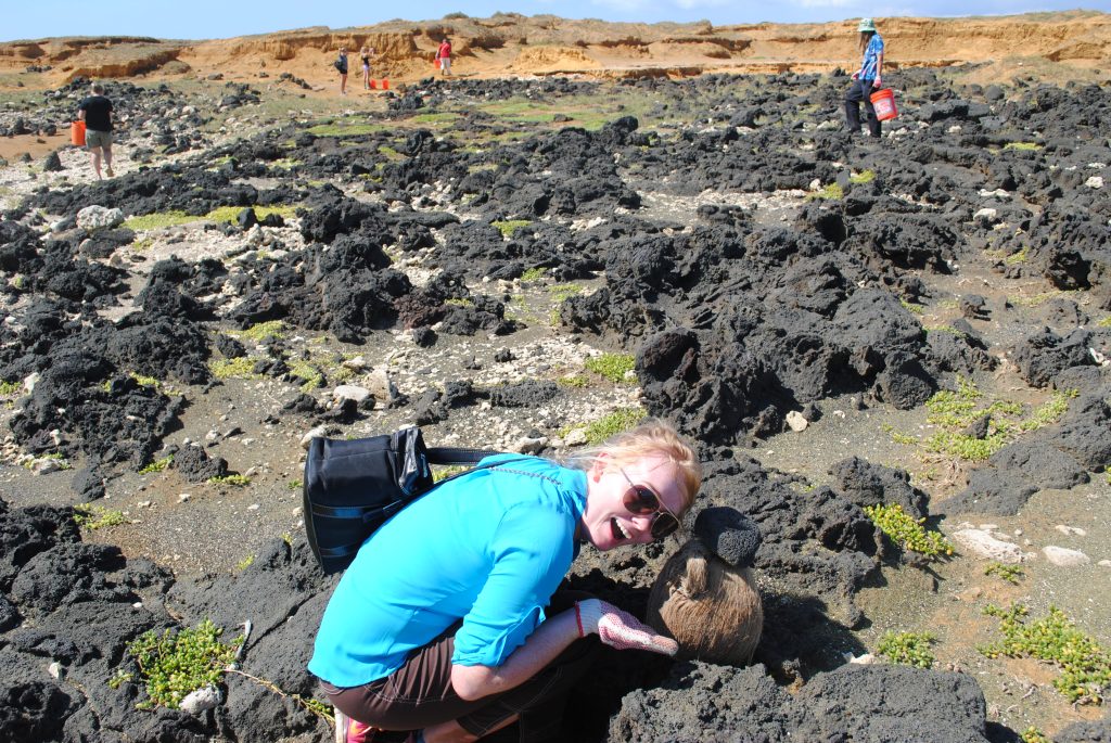 I contemplated while waiting in line what the day would bring. I had to admit. I was super hyped. Collecting marine debris may not be someone’s ideal activity when first landing their feet in Hawaii, but I was interested and willing to see how I could make a small difference to save some precious wildlife. I was prepared for an epic search of trash and duckies and all sorts of good stuff, like I had been reading in Donovan Hohn’s “Moby Duck” during class.