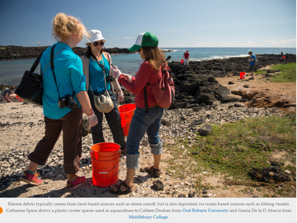 “Each year, trade winds or current flows bring at least 10 to 20 tons of marine debris to Hawaii every year. The danger of swallowing plastics and other foreign objects for an animal is bad for us too. How about a plastic dinner?” Cat asked, while winking. She was poking fun, but the thought of a plastic dinner to me certainly wasn’t appealing. A hand popped with a question in the back of the bus.
