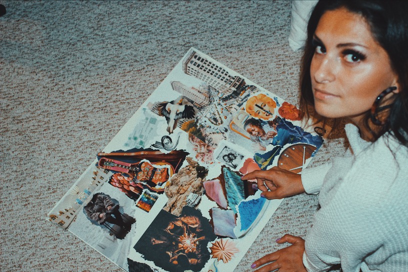 “My flow goes like this: creative energy sparks curiosity, then curiosity takes me on a journey, where I start to see coincidence. I get a lot of inspiration from doing collages. I love the chaotic feeling of not knowing what I’m searching for. It has a mood of synchronicity where you never know what is going to pop out at you…I’ll get one ‘sign’ after another, and before I know it, there’s a link of images that created an idea.”